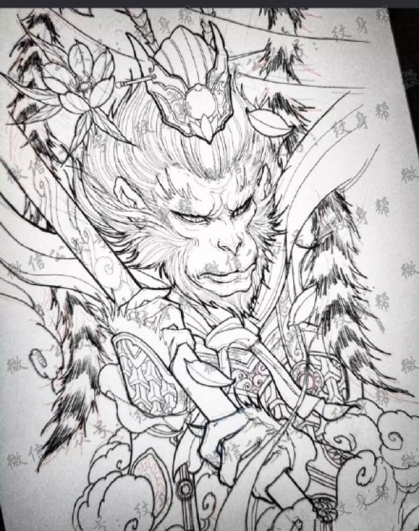 一组27张斗战胜佛齐天大圣孙悟空纹身手稿图案