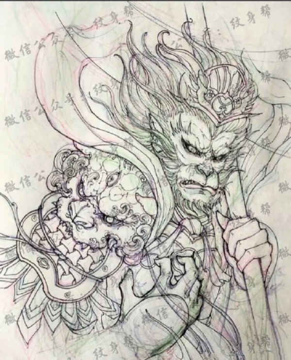 一组27张斗战胜佛齐天大圣孙悟空纹身手稿图案
