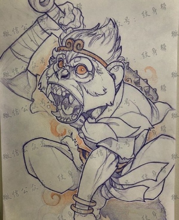 半甲唐狮手稿 传统的9款唐狮主题半甲纹身手稿图片