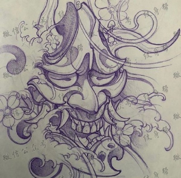 半甲唐狮手稿 传统的9款唐狮主题半甲纹身手稿图片