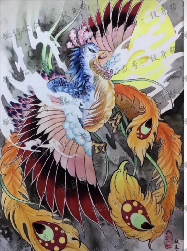 一组9张凤凰纹身手稿素材图案