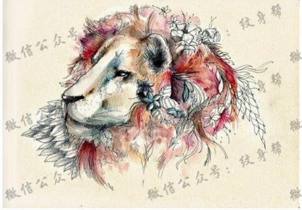 半甲唐狮手稿 传统的9款唐狮主题半甲纹身手稿图片