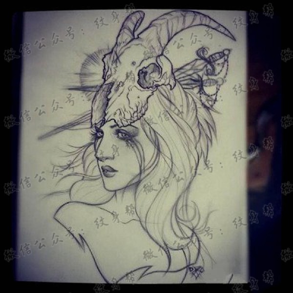羚羊女郎纹身手稿图案