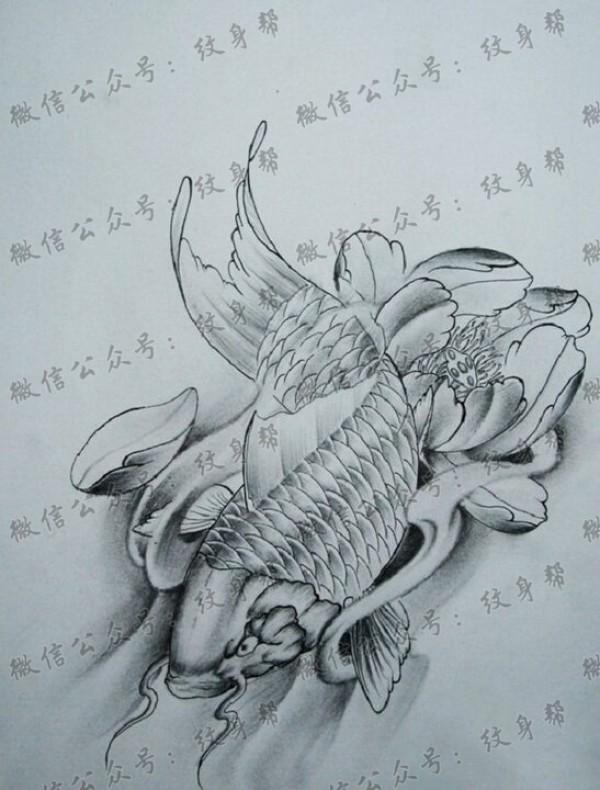 传统的30款鲤鱼纹身手稿图片赏析