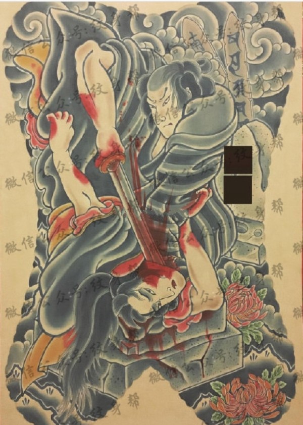 日式满背纹身手稿_一组9张日式老传统纹身手稿图案