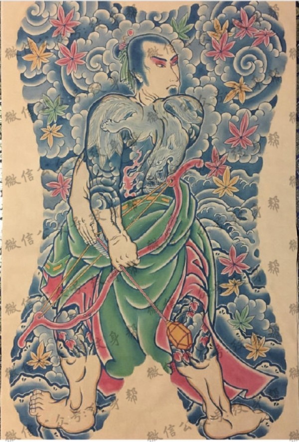 日式满背纹身手稿_一组9张日式老传统纹身手稿图案