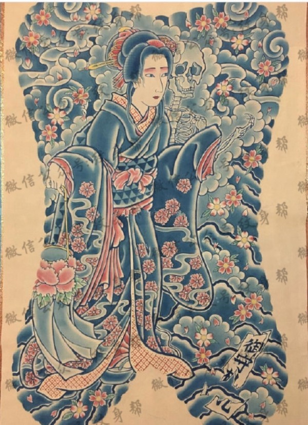 日式满背纹身手稿_一组9张日式老传统纹身手稿图案
