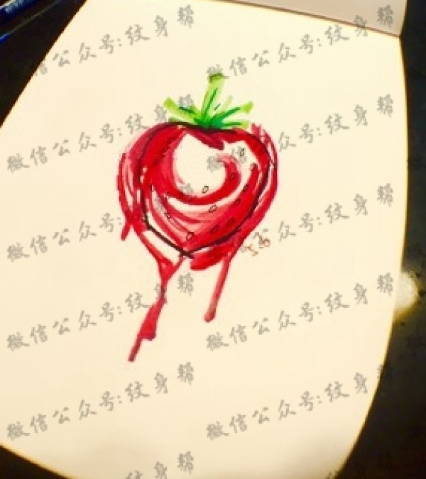 草莓手稿—一组简约小清新9张草莓纹身手稿图案素材