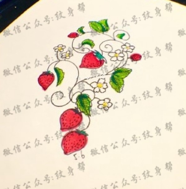 草莓手稿—一组简约小清新9张草莓纹身手稿图案素材