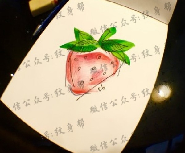 草莓手稿—一组简约小清新9张草莓纹身手稿图案素材