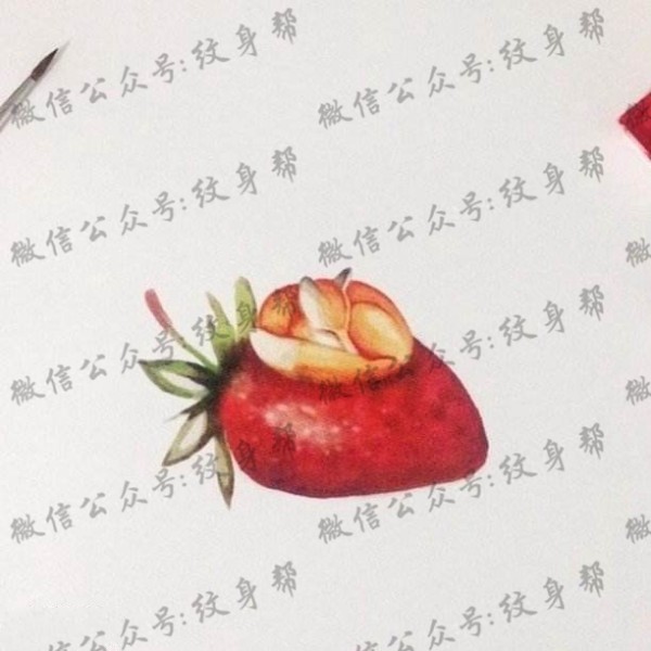 草莓手稿—一组简约小清新9张草莓纹身手稿图案素材