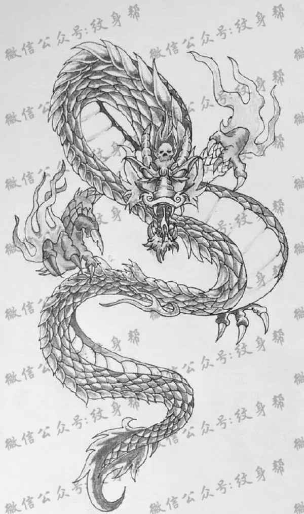 龙纹身手稿_一组老传统黑灰龙手稿纹身图案
