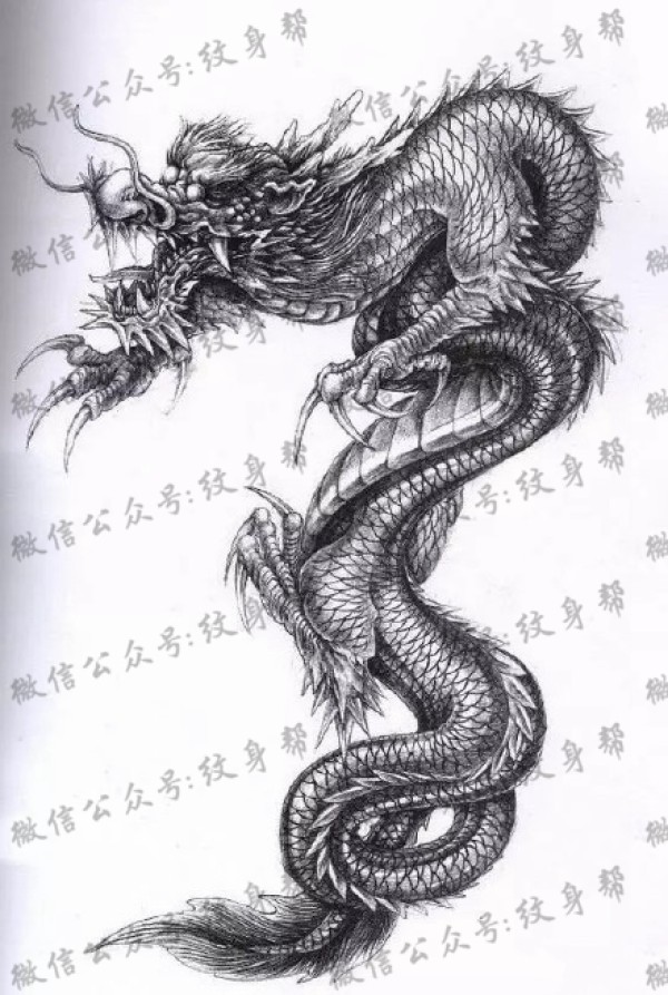 龙纹身手稿_一组老传统黑灰龙手稿纹身图案