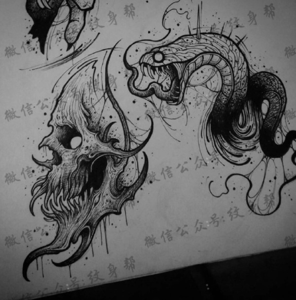 创意暗黑设计稿--一组27张国外优秀的暗黑纹身手稿图案