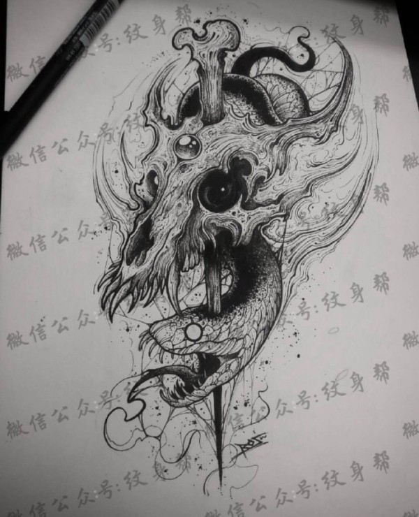 创意暗黑设计稿--一组27张国外优秀的暗黑纹身手稿图案