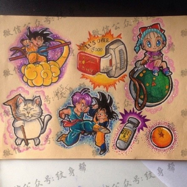 动漫龙珠纹身手稿_一组16张动漫龙珠纹身手稿素材图案