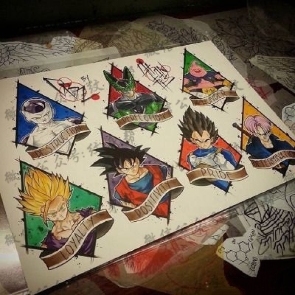动漫龙珠纹身手稿_一组16张动漫龙珠纹身手稿素材图案