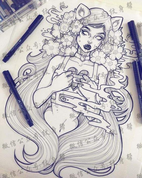 女生喜爱的简单手绘纹身图案来自于纹身师安雅