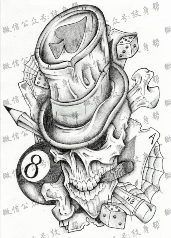 一组24张优秀的newschool黑灰未上色纹身手稿图案