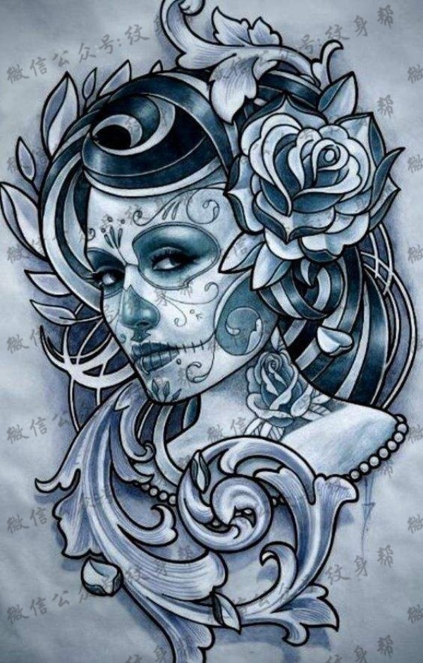 传统艺妓般若纹身图案手稿