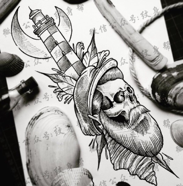 一组24张优秀的newschool黑灰未上色纹身手稿图案