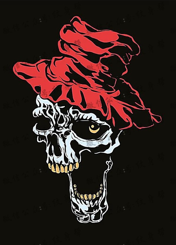 骷髅纹身手稿—一组17张戴帽子的骷髅纹身手稿图案素材