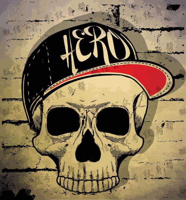 骷髅纹身手稿—一组17张戴帽子的骷髅纹身手稿图案素材