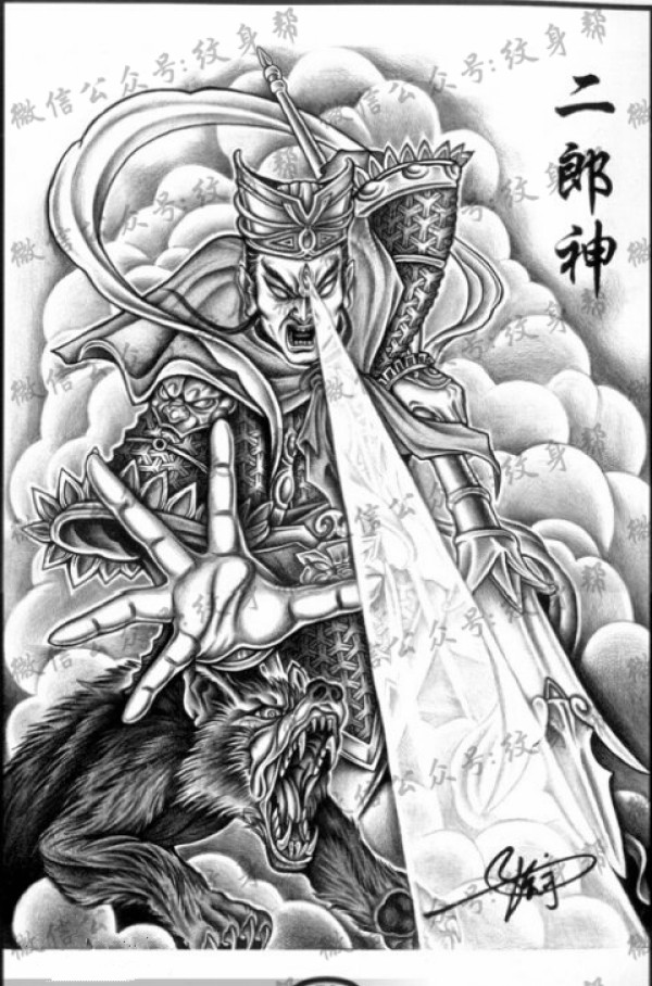 二郎神纹身手稿—一组10张二郎神杨戬纹身手稿图案