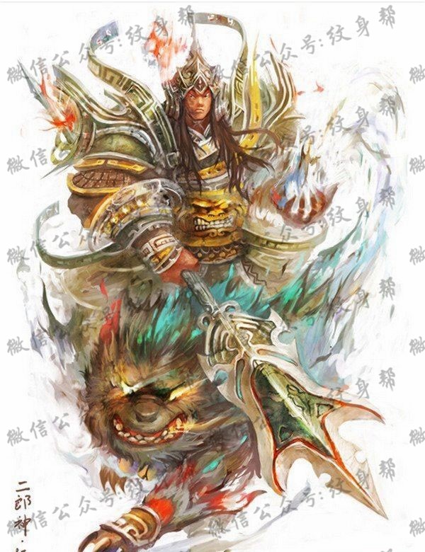 二郎神纹身手稿—一组10张二郎神杨戬纹身手稿图案
