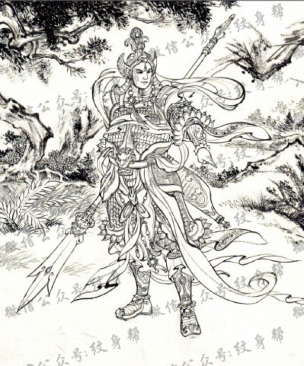 二郎神纹身手稿—一组10张二郎神杨戬纹身手稿图案