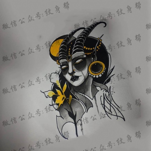一组12张暗黑羚角纹身手稿图案素材