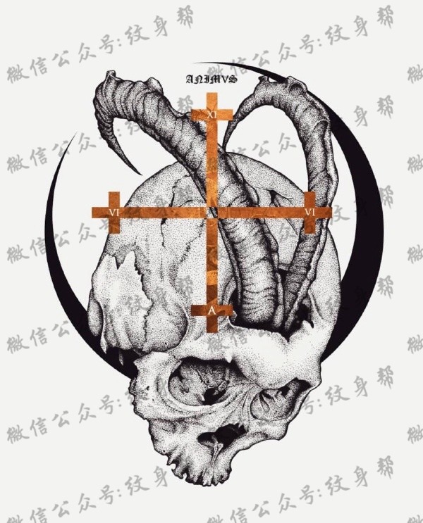 一组12张暗黑羚角纹身手稿图案素材