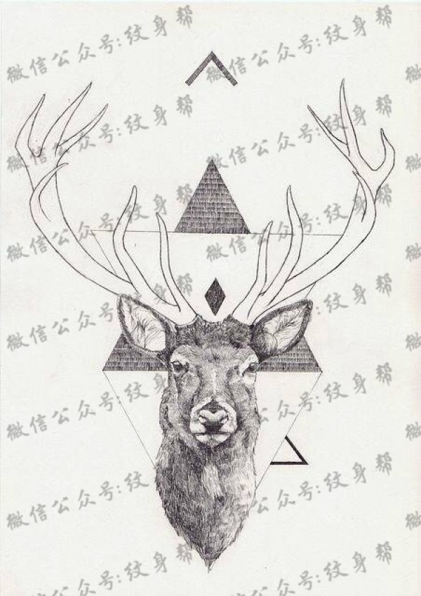 鹿纹身手稿_一套38张精美鹿纹身手稿图案欣赏