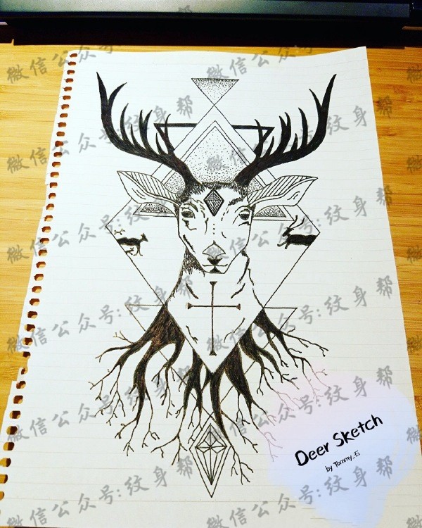 鹿纹身手稿_一套38张精美鹿纹身手稿图案欣赏