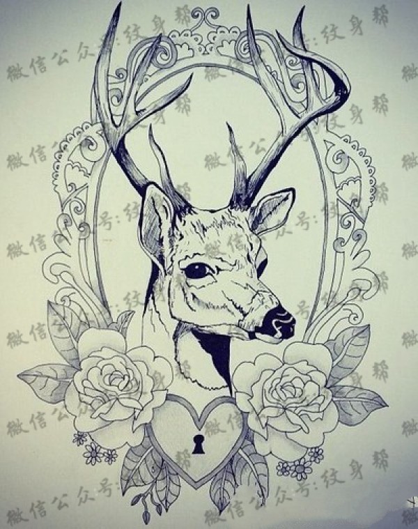 鹿纹身手稿_一套38张精美鹿纹身手稿图案欣赏