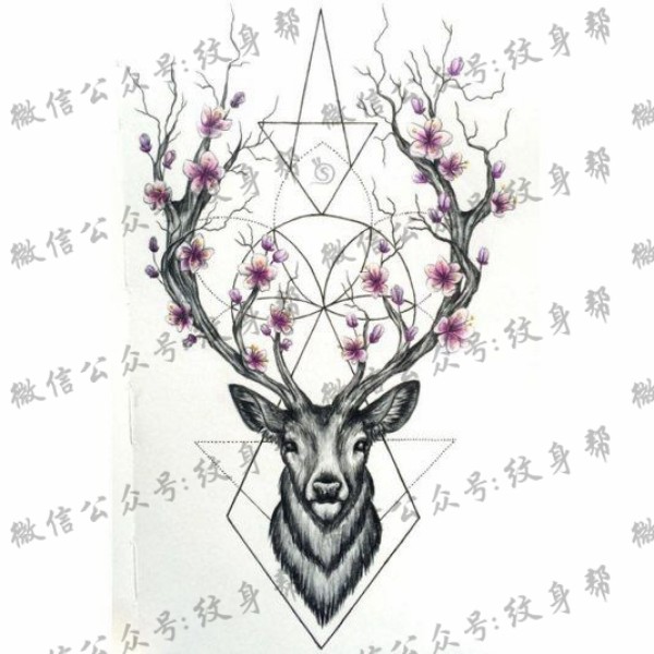 鹿纹身手稿_一套38张精美鹿纹身手稿图案欣赏