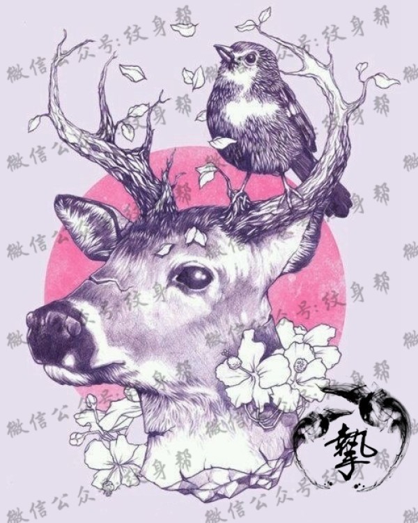 鹿纹身手稿_一套38张精美鹿纹身手稿图案欣赏