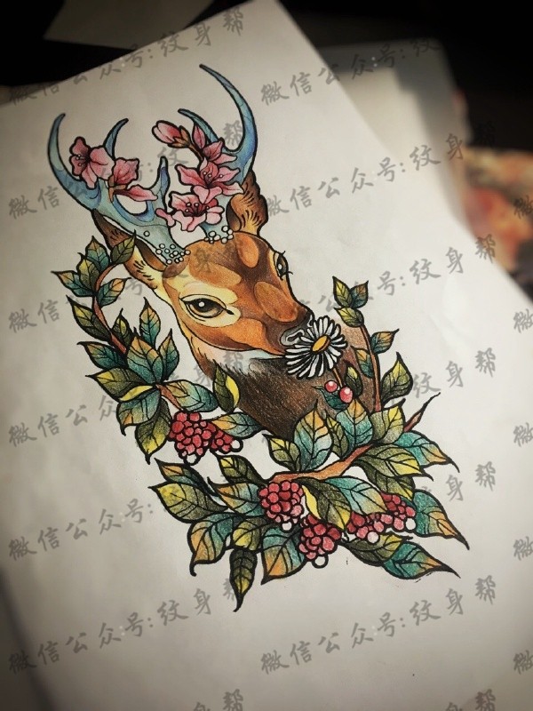 鹿纹身手稿_一套38张精美鹿纹身手稿图案欣赏