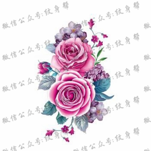 一组15张粉红色主题动物和花朵纹身手稿图案