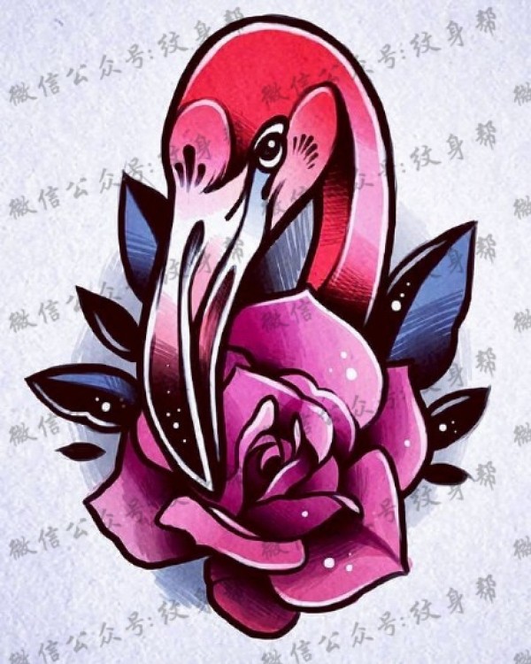 一组15张粉红色主题动物和花朵纹身手稿图案