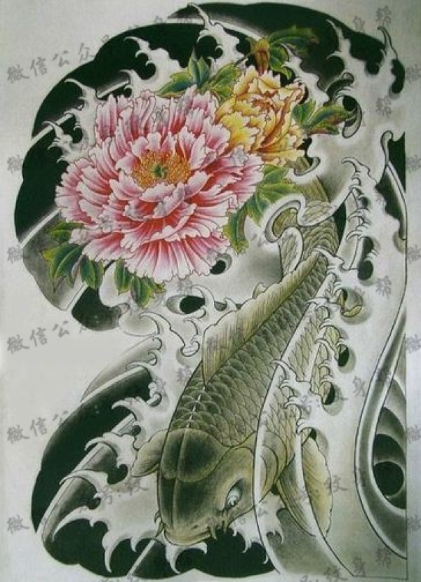 传统的30款鲤鱼纹身手稿图片赏析
