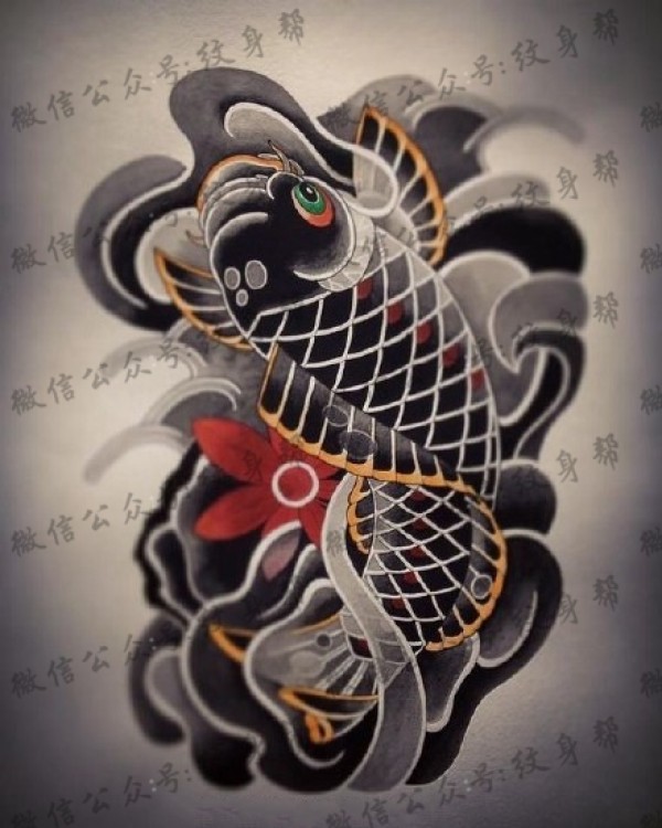 传统的30款鲤鱼纹身手稿图片赏析