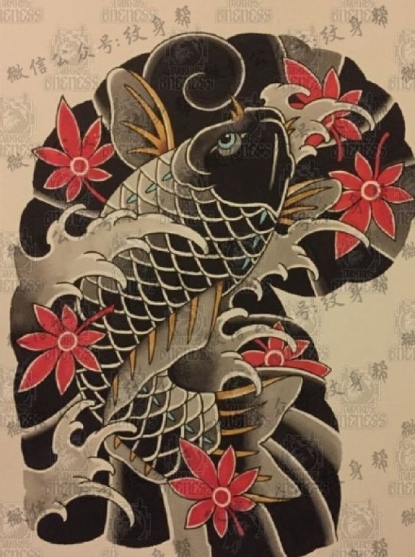传统的30款鲤鱼纹身手稿图片赏析