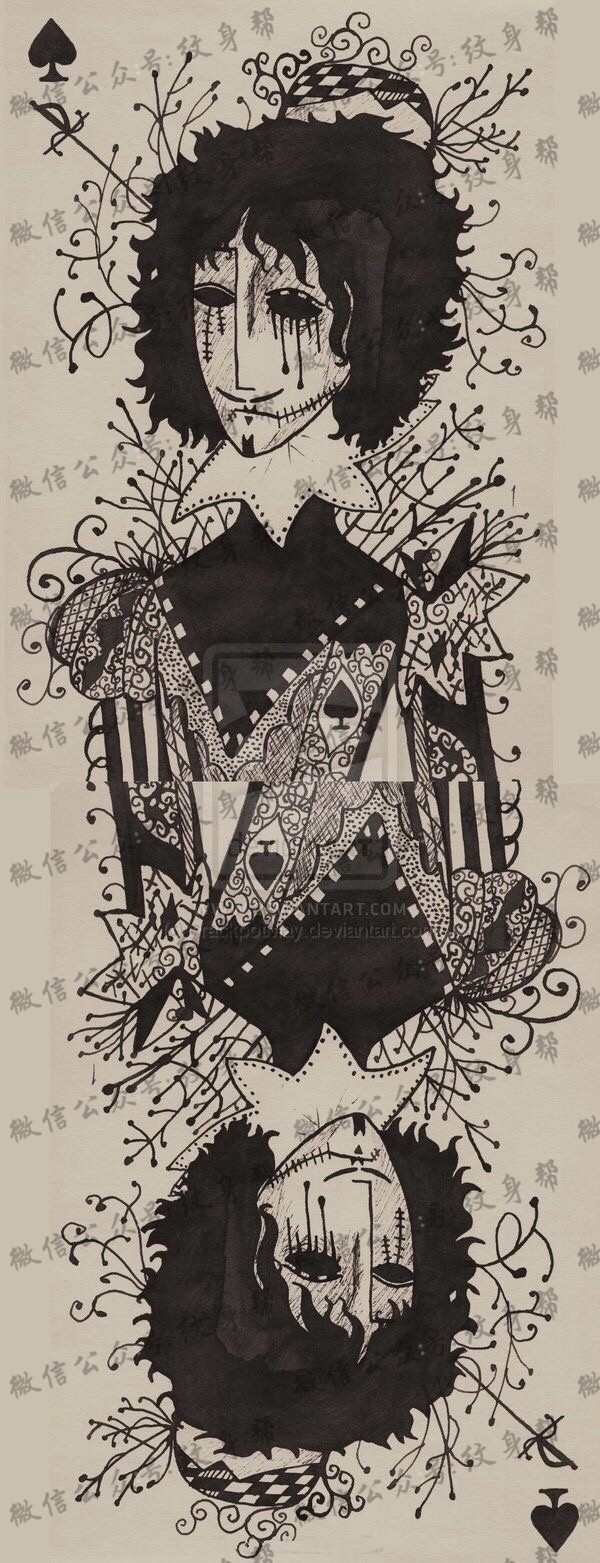 扑克牌纹身手稿_一套27张扑克牌元素纹身手稿图案