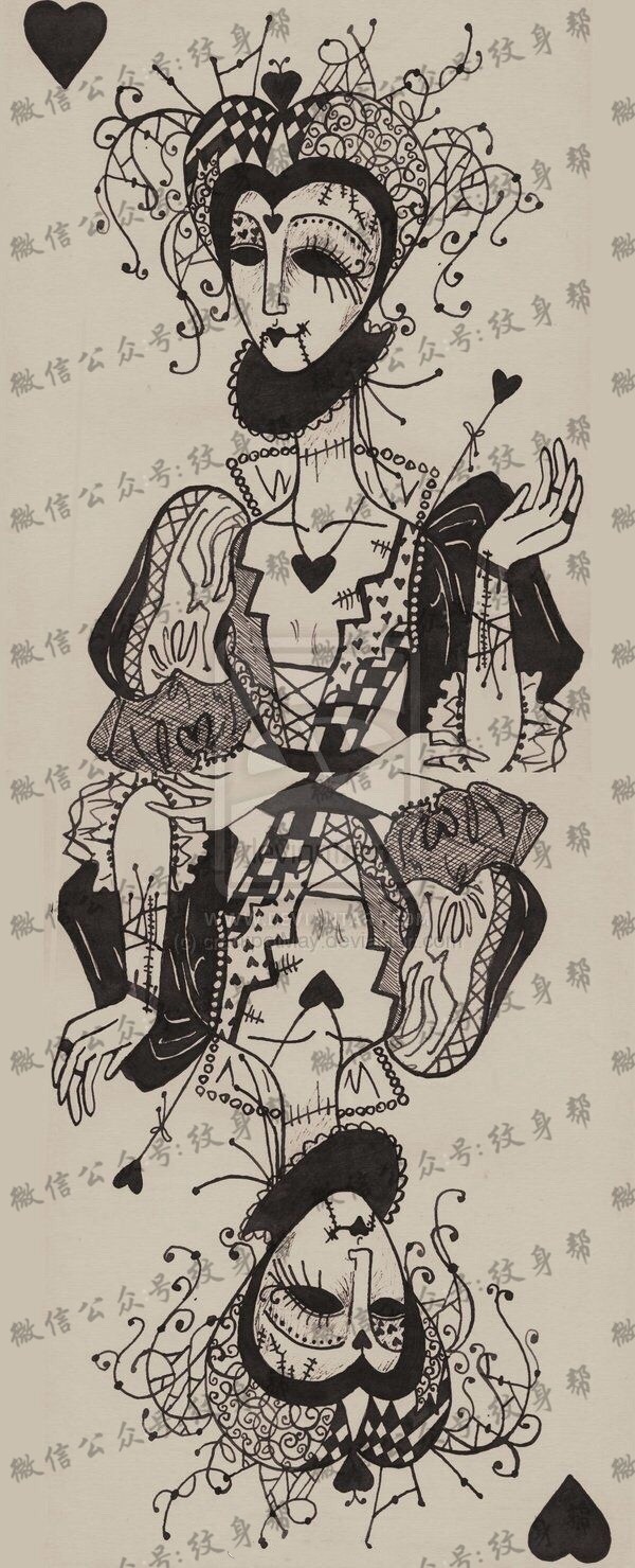 扑克牌纹身手稿_一套27张扑克牌元素纹身手稿图案