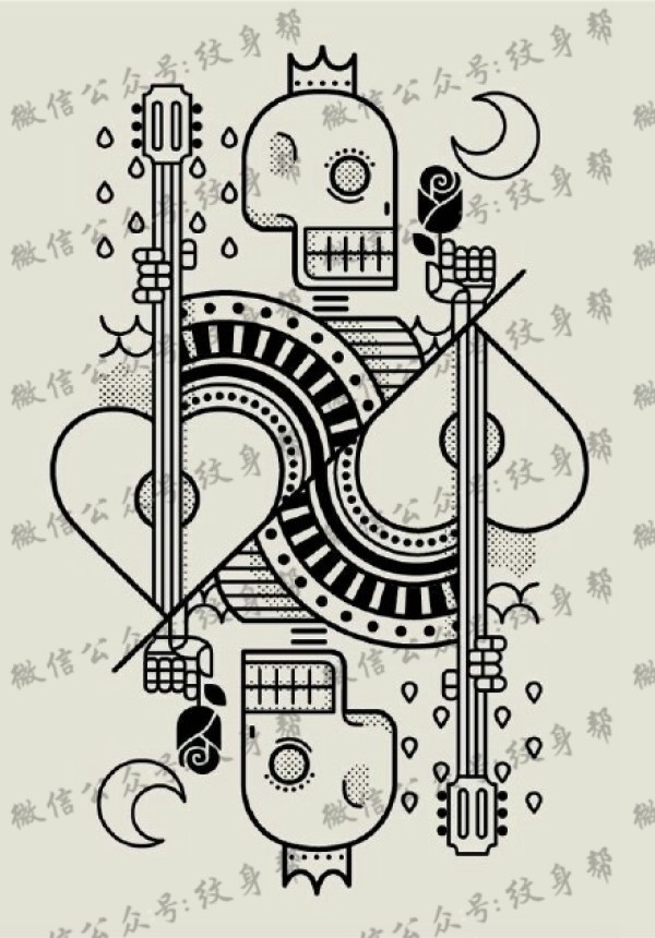 扑克牌纹身手稿_一套27张扑克牌元素纹身手稿图案