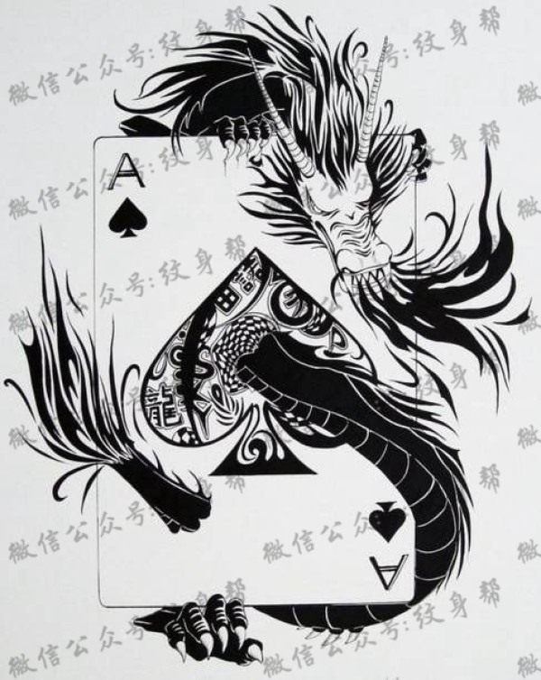 扑克牌纹身手稿_一套27张扑克牌元素纹身手稿图案