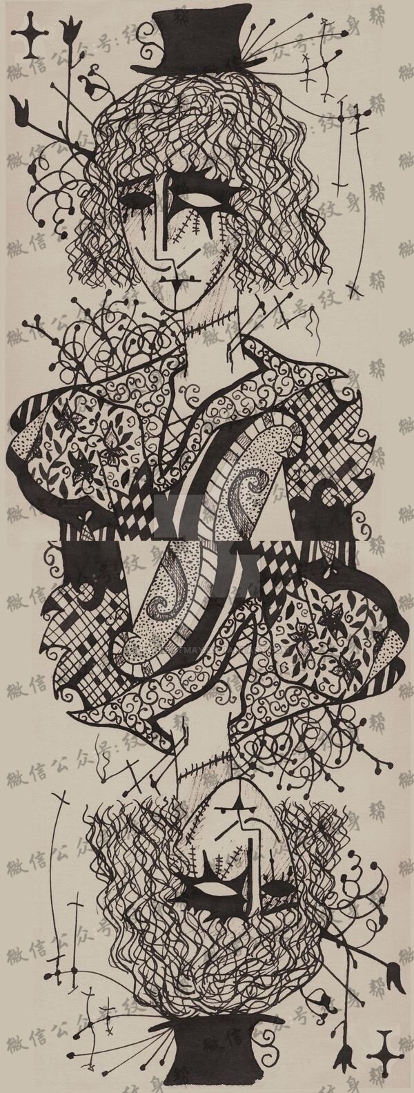 扑克牌纹身手稿_一套27张扑克牌元素纹身手稿图案