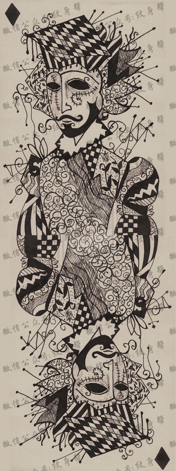 扑克牌纹身手稿_一套27张扑克牌元素纹身手稿图案
