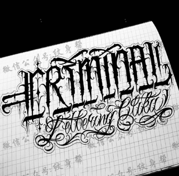 花体字手稿_一组17张优秀的花体字纹身手稿图案